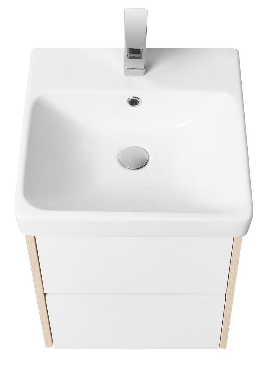 - Тумба комплектуются новой современной раковиной Адриана от бренда Santek с удобной чашей.