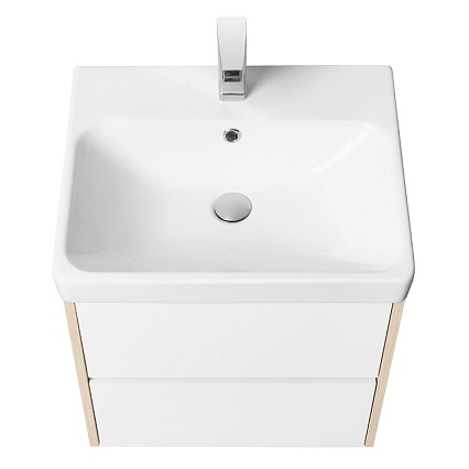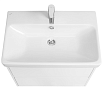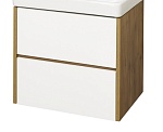 - Тумба комплектуются новой современной раковиной Адриана от бренда Santek с удобной чашей.