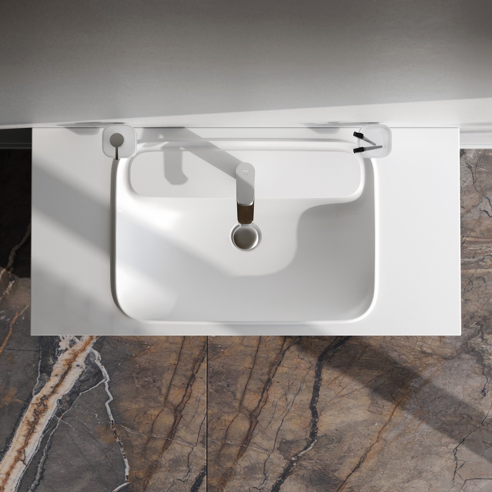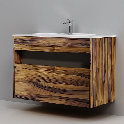 Удобный выдвижной ящик и вместительная открытая ниша позволяют хранить все необходимые средства под рукой. Невероятно мягкое открытие и закрытие благодаря направляющим скрытого монтажа с системой soft close. Универсальный монтаж подвесной и напольный (комплект ножек приобретается отдельно).