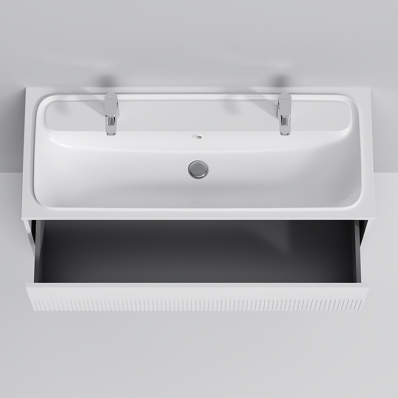 2 удобных выдвижных ящика позволяют хранить все необходимые средства под рукой. Невероятно мягкое открытие и закрытие благодаря направляющим скрытого монтажа с системой soft close. Универсальный монтаж подвесной и напольный (комплект ножек приобретается отдельно).