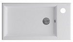 Внутреннее покрытие выполнено в современном цвете Anthracite. Встроенная керамическая раковина белоснежного цвета оснащена специальным бортиком для защиты от пролива воды за мебель.