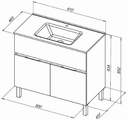 Тумба с раковиной Aquanet Алвита New 90 см 1 ящик 2 дверцы, дуб веллингтон белый