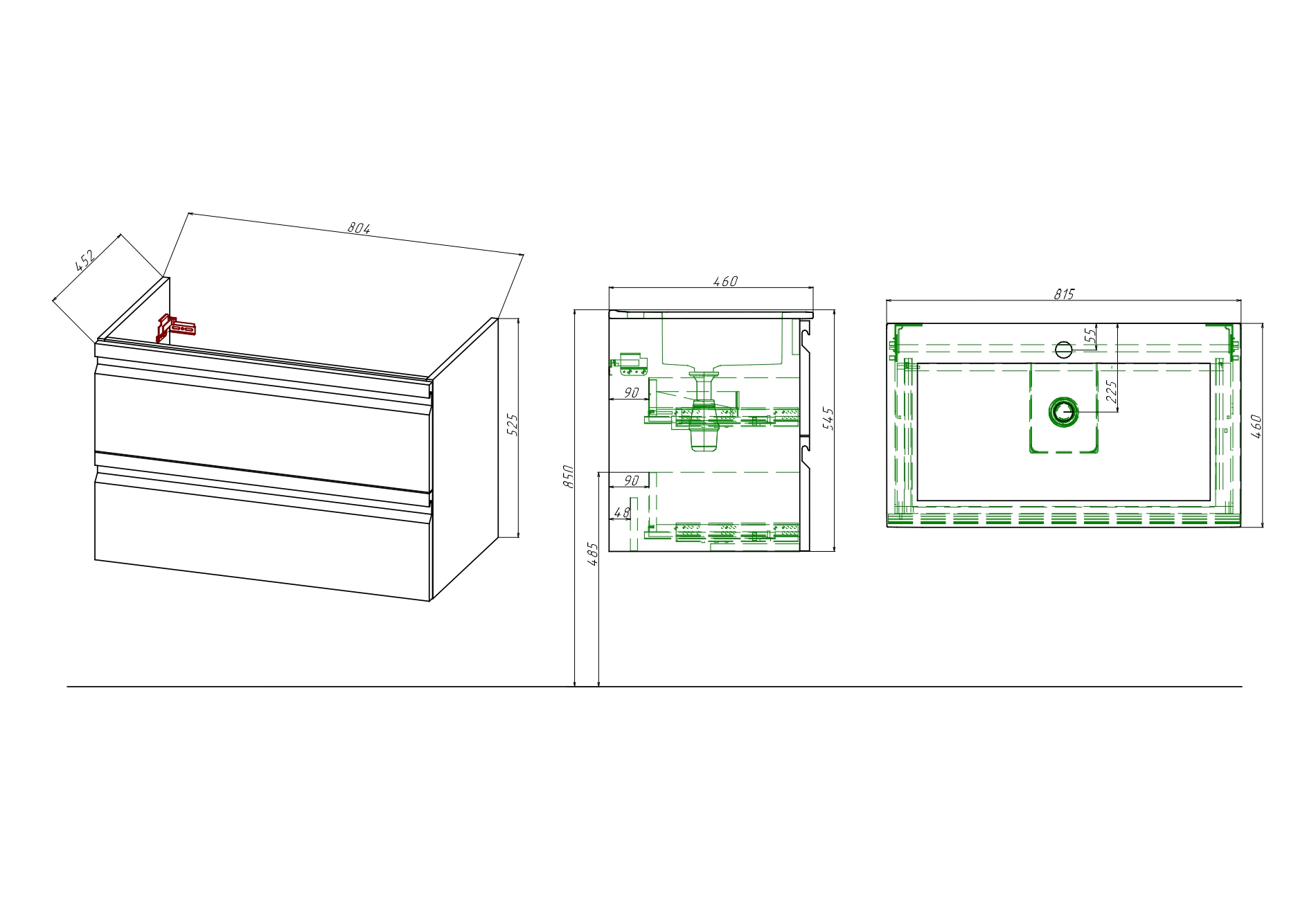Мебельная раковина: Раковина из 100% санфарфора с идеальной гладкой поверхностью не только выглядит стильно, но и обеспечивает легкость в уходе. Несмотря на компактную глубину, раковины обладают достаточно вместительной чашей, предотвращающей разбрызгивание воды.