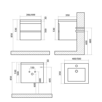 Тумба с раковиной из искусственного камня Art&Max Family 50 см подвесная