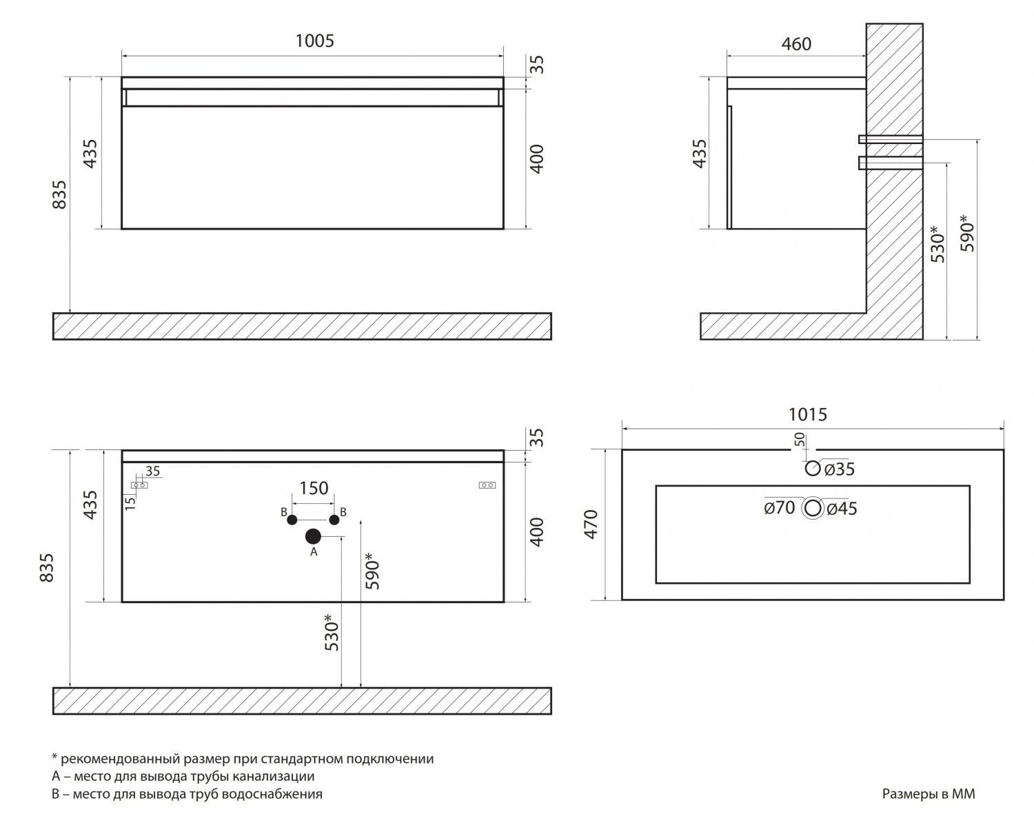 - Комплект подвесной мебели для ванной комнаты с керамической раковиной