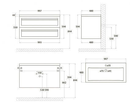 - база оснащена доводчиками скрытого монтажа с системой Soft close (плавного закрывания)