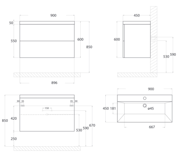 - комплект подвесной мебели для ванной комнаты с керамической раковиной