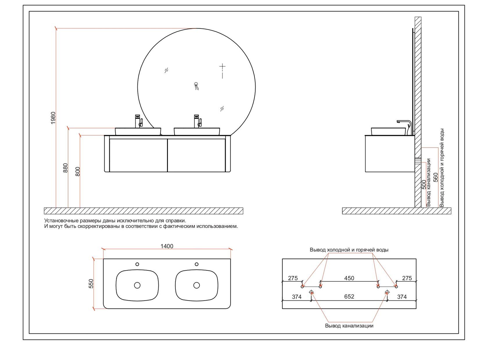 Тумба с раковиной Black & White U916.1400-2 Double 140 см, бежевый, две раковины