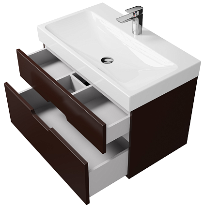 Решение для ванной комнаты на любой вкус! Шоколад и капучино в чистом виде или разбавленные матовой белой эмалью - вы можете выбрать любой вариант оформления. Приятная палитра оттенков и возможность комбинировать цвета элементов фасада - то, что делает тумбу Malibu по-настоящему уникальной.