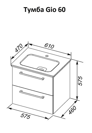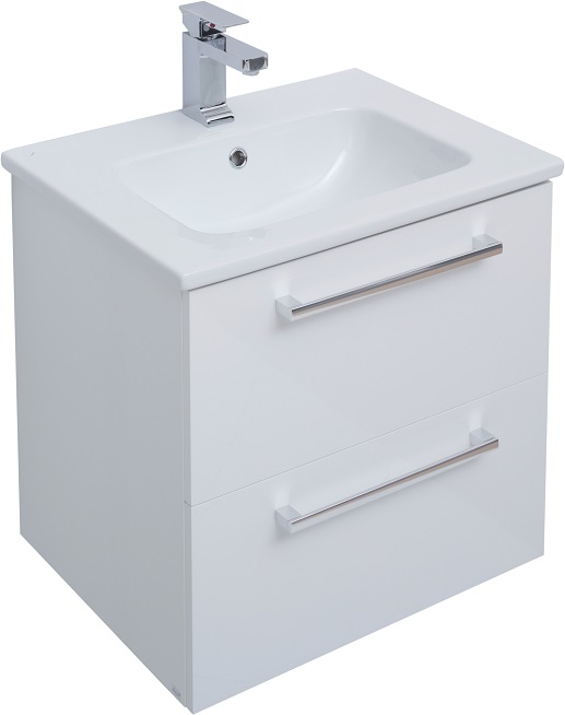 Подвесная современная коллекция- тумба с раковиной Dreja Gio 60 см в цвете белый глянец, с 2-мя выдвижными ящиками с доводчиками Hettich.