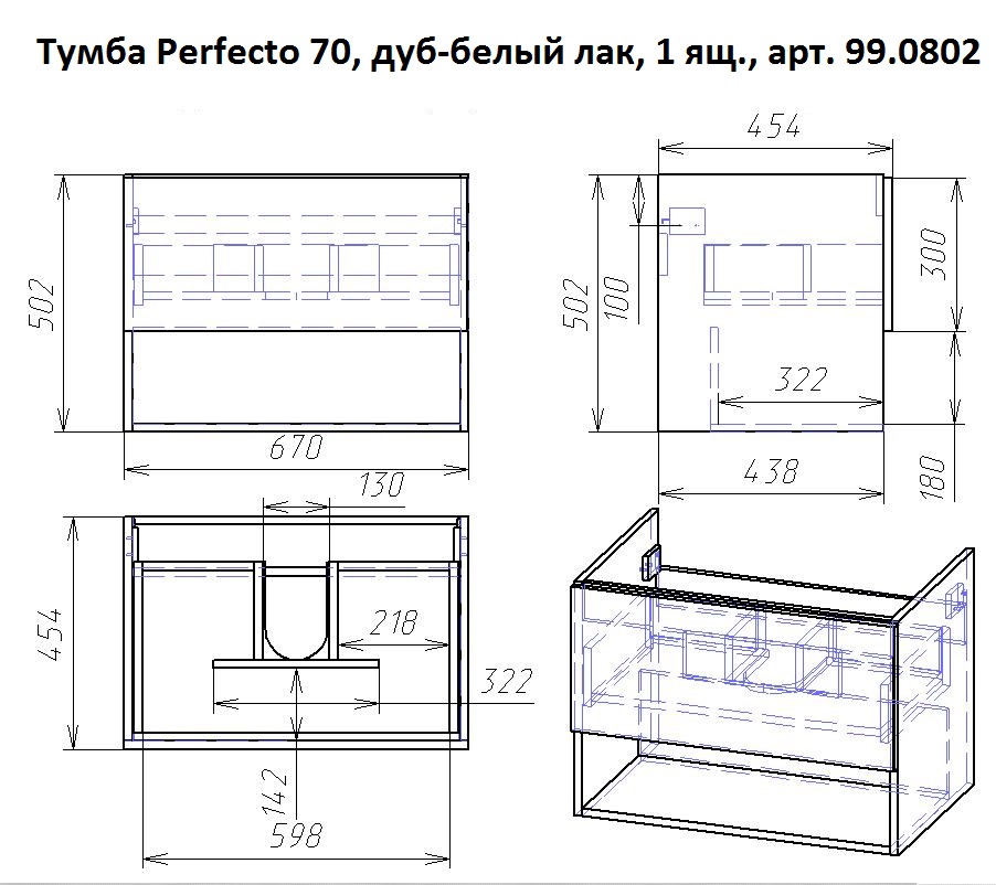 Копия названияDreja Perfecto 70 см, дуб/белый