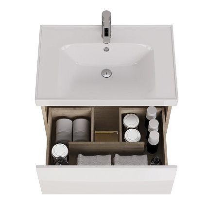 Тумба с раковиной Dreja Perfecto 70 см со встроенным органайзером, в цвете дуб/белый.