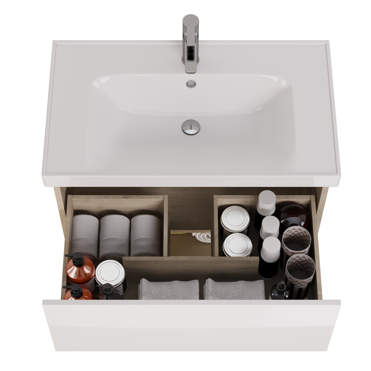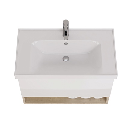 Тумба с раковиной Dreja Perfecto 90 см со встроенным органайзером, в цвете дуб/белый.