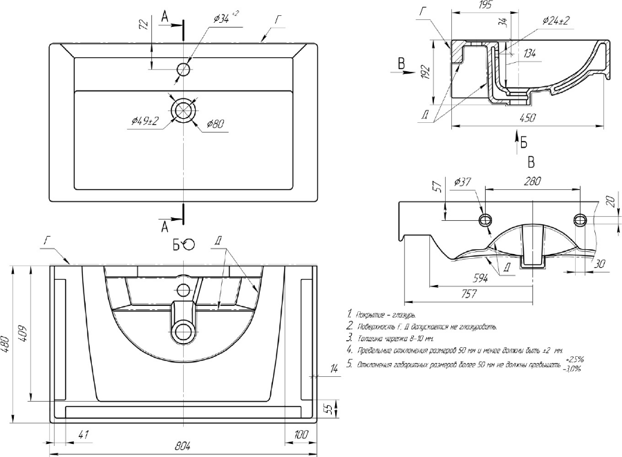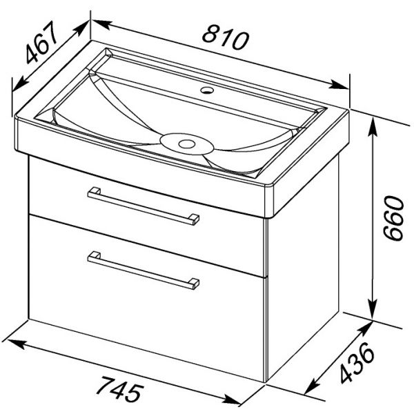 - оснащение - фаянсовая раковина Дрея 80 см, 2 ящика, доводчики Hettich