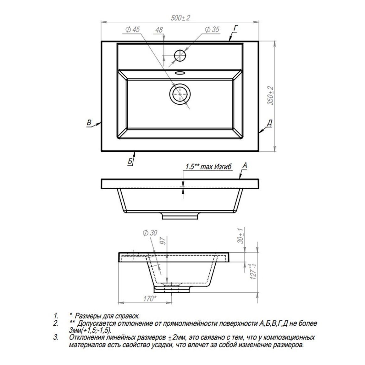 Тумба с раковиной Grossman Виста 50 см напольная, белый глянец