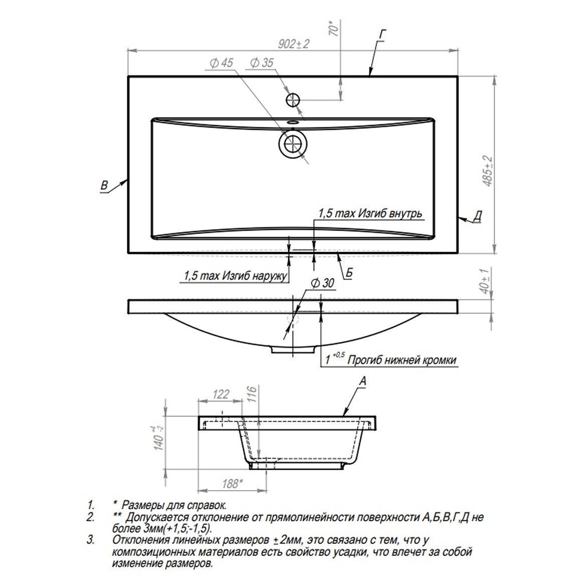 Тумба с раковиной Grossman Виста 90 см напольная, белый глянец