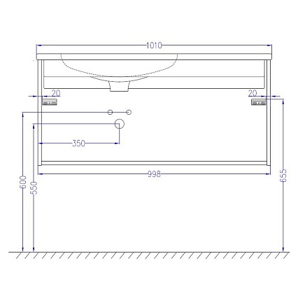 - Раковина керамическая со столешницей справа, 1 отверстие для смесителя