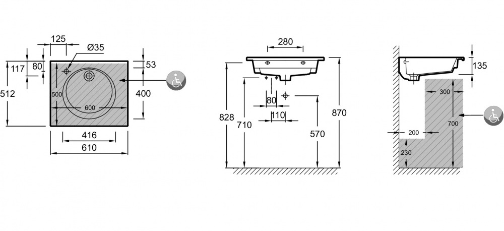 - Для раковины подходит смеситель, монтируемый в 1 отверстие