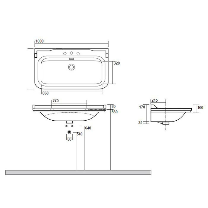 - Раковина керамическая двойная 100 см (с 1 отв. под смеситель)