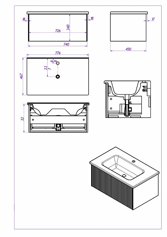 - Габариты корпуса тумбы (ШхВхГ): 740х320х450 мм.