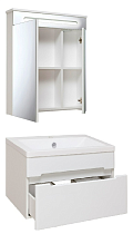 Тумба под умывальник напольная с двумя распашными дверками. Петли со встроенным доводчиком, ножки хром - 2шт, ножки пластик - 2шт. Комплектуется умывальником из литьевого мрамора "Omega" 60см.