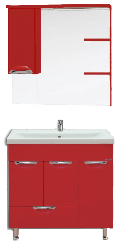 Тумба с раковиной SanMaria Милан 85, 1 ящик, квадратная раковина красный.