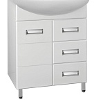 Стильный набор мебели Style Line Ирис 65 в белом цвете – это красивый и практичный вариант обустройства для Вашей ванной комнаты. Пропорциональные, ровные формы изделий в сочетании с фрезерованным декором, гармонично впишутся в любой интерьер. Предметы оборудованы удобными отделениями для хранения, поэтому все необходимые принадлежности и косметика найдут своё место. Для Вашего комфорта, производитель предусмотрел наличие доводчиков и направляющих для полного выдвижения ящиков.