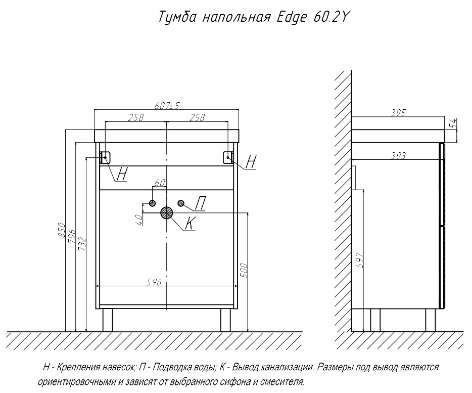 - Размер тумбы с раковиной: Ш596хГ393хВ796 мм