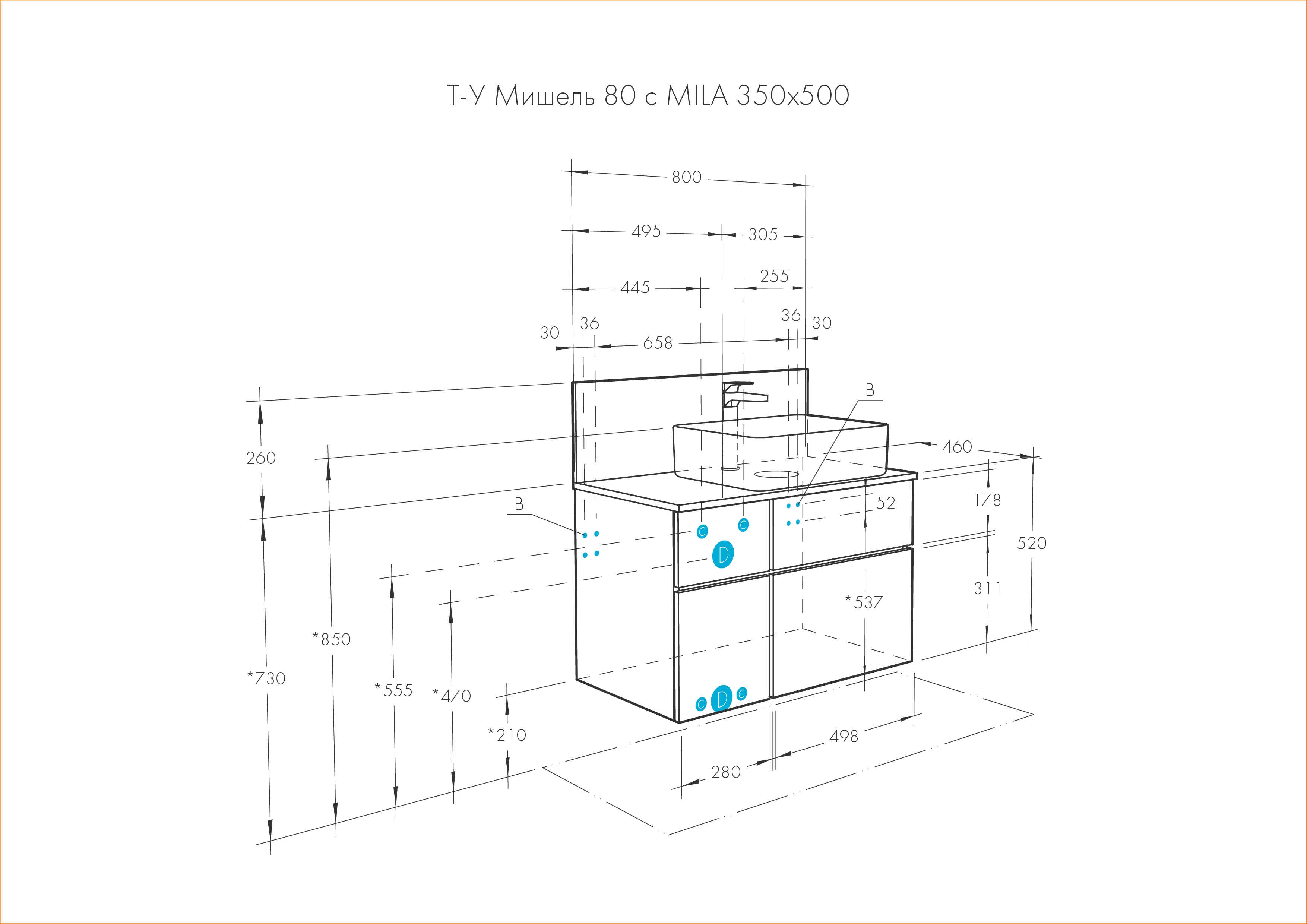 Копия названияТумба со столешницей Акватон Мишель 80 см, ЛВДСП, раковина Mila, дуб рустикальный, фьорд 1A2568K3MIX30
