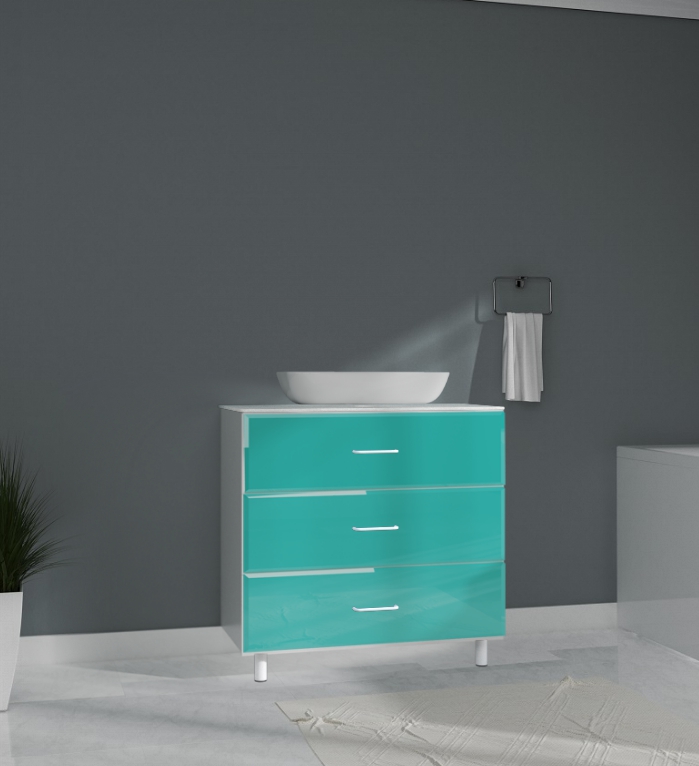 Копия названияТумба со столешницей Marka One Mix 70 см, напольная, 3 ящика, стекло