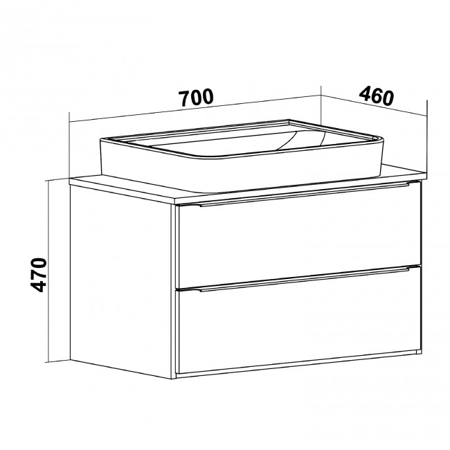 Подвесная тумба функционально состоит из двух ящиков на шариковых направляющих с механизмом плавного закрывания. Модуль может комплектоваться различными по размеру и дизайну накладными умывальниками.