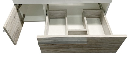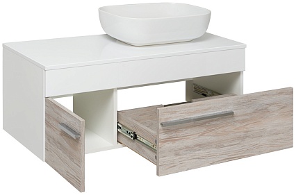 К тумбе для ванной комнаты подходят накладные керамические раковины: Infinity 60 с чашей прямоугольной формы (600х370 мм), глубиной 12 см; Moduo 50 SQUARE с чашей прямоугольной формы (500х360 мм), глубиной 15 см; Moduo 55 LEAF - асимметричная раковина, которую можно установить любой стороной, дизайнерское решение для нестандартных интерьеров (565х365 мм), глубиной 15 см; Гамма 56 - c глубокой чашей и высокими бортиками, которые отражают современные тренды в дизайне. (560х370 мм), глубиной 18 см.