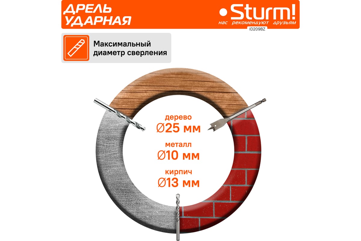 Мах диаметр сверления (кирпич), мм13