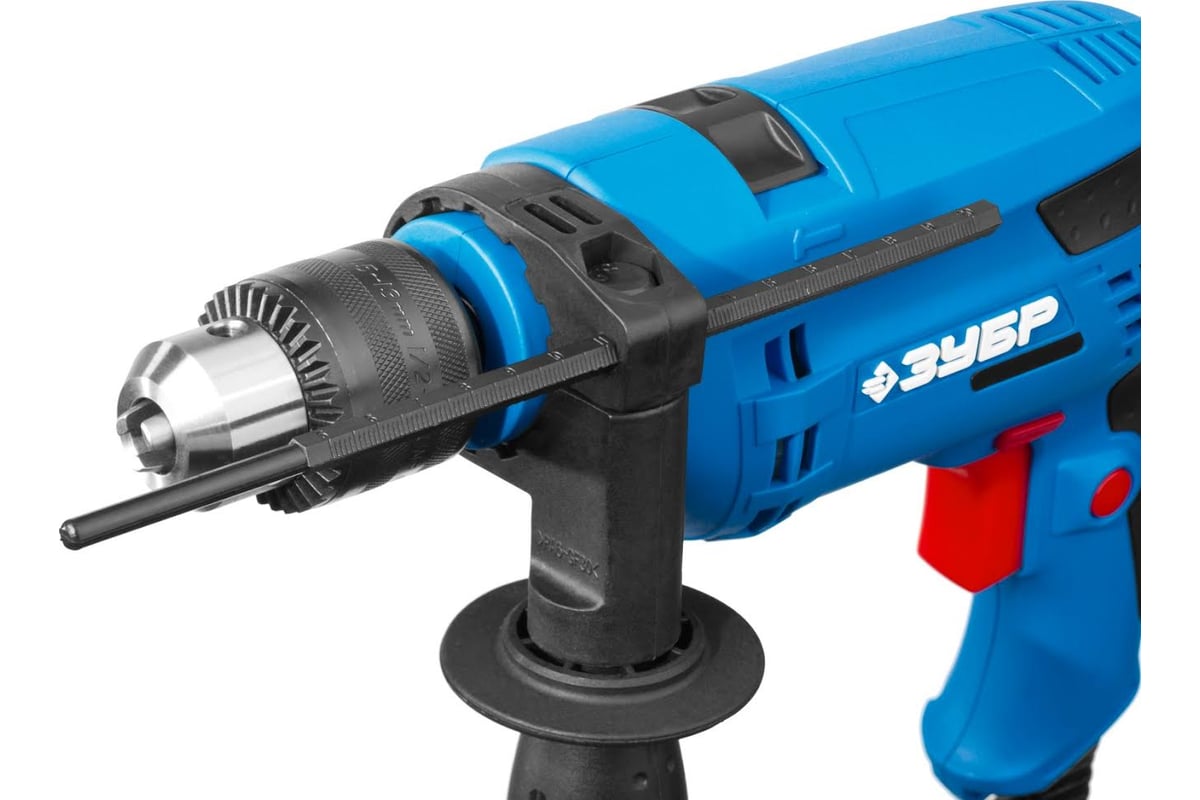 Ударная дрель Зубр ЗДУ-680 ЭРМ2 - компактный и легкий инструмент для работ по дому. Она имеет всё необходимое для комфортной работы: удобную обрезиненную основную рукоять, реверс, электронную регулировку оборотов, дополнительную рукоятку-пенал, кнопку блокировки клавиши "Пуск". Ключевой патрон обеспечивает надежное удержание оснастки, особенно при ударном сверлении. Модель используется для сверления отверстий в материалах различной твердости - металле, дереве, бетоне.