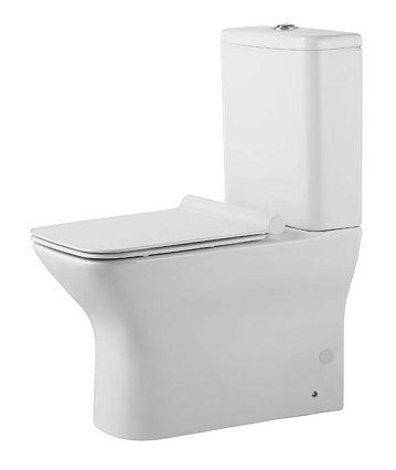 - Унитаз-компакт безободковый пристенный с горизонтальным выпуском: санфарфор, скрытая система монтажа