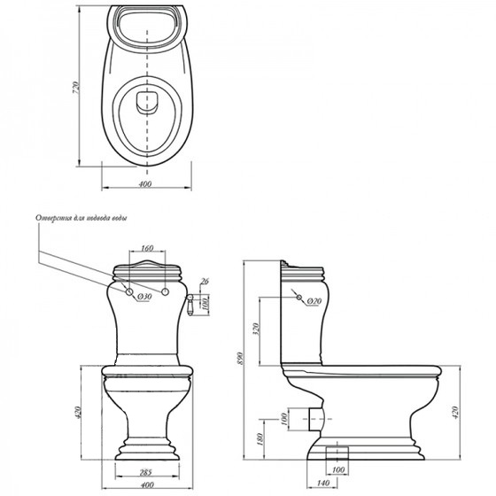 - Дополнительно необходимо приобрести механическую кнопку смыва в цветах: хром, бронза или золото