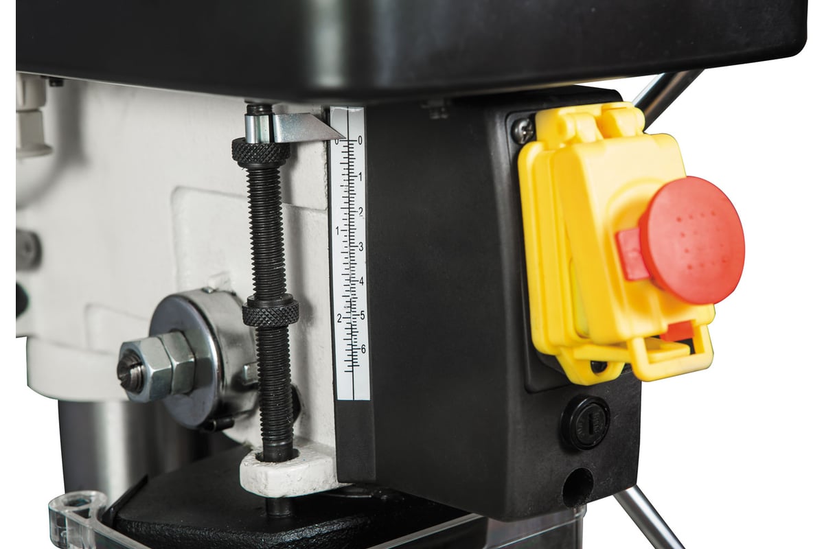 Вертикально-сверлильный станок Jet JDP-10M 10000350M - самая компактная модель в своей серии. Благодаря небольшим размерам агрегат успешно применяется для работы в малогабаритных помещениях. Устройство используется для сверления отверстий. В комплект поставки входят небольшие тиски, которые крепятся на подвижную платформу и позволяют надежно фиксировать обрабатываемую деталь. Станок питается от стандартной сети с напряжением 220 В. Ограничитель глубины сверления и шкала с мерными делениями способствуют получению высокоточного результата работы. В зависимости от твердости материала и диаметра сверления оператор задает одну из 12 возможных скоростей сверления (для работы в разных скоростных диапазонах предусматриваются две ступени установки ремня).