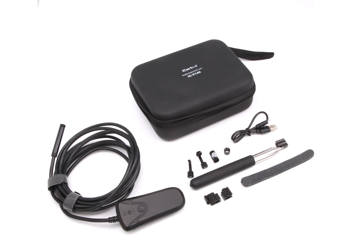 WIFI-видеоэндоскоп iCartool с телескопическим держателем IC-V140 обеспечивает качественную съемку с заявленным разрешением HD 1280х720 и углом обзора в 70 градусов. Прибор позволяет вывести картинку исследуемой области на экран любого смартфона или планшета. Имеет максимальную совместимость с различными устройствами на базе ОС IOS / Android.