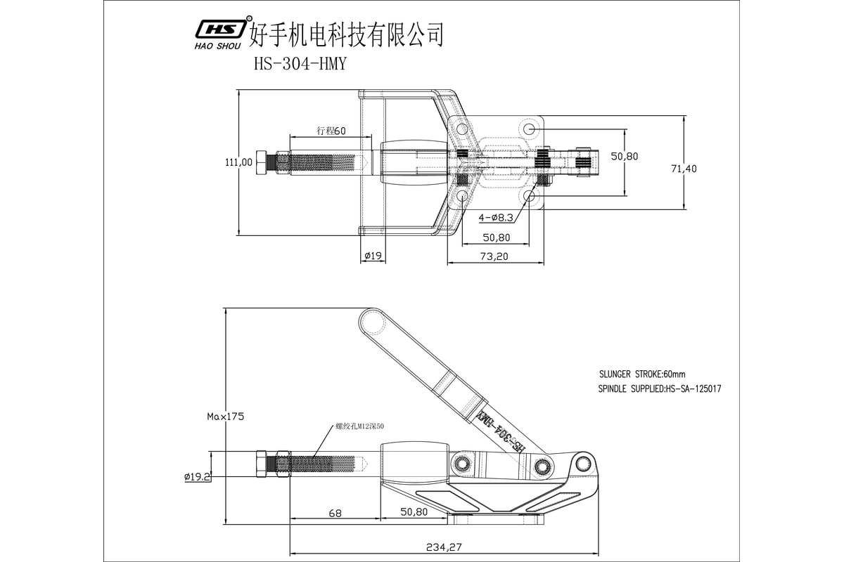 Зажим шатунного типа HS CLAMP HS-304-HM представляет собой механический зажим шатунного типа с прочным фланцевым основанием из ковкого чугуна. Внутренняя резьба штока М12х1.75. Зажим оснащен закаленными втулками.