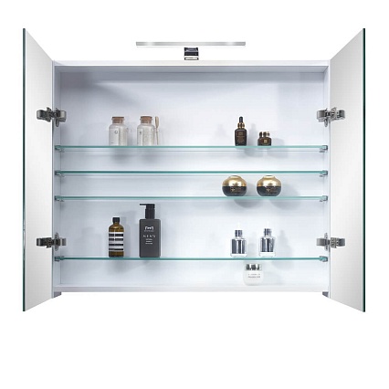 - Зеркало: распашные дверцы со скрытыми стеклянными полками, которые обеспечивают комфортное размещение ванных и косметических принадлежностей + LED подсветка (2 распашные дверцы).
