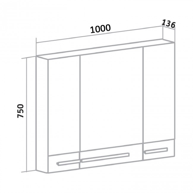 Зеркальный шкаф без подсветки с двумя распашными дверками, за которыми две внутренние полки. Петли со встроенным доводчиком, ручки - 2шт.