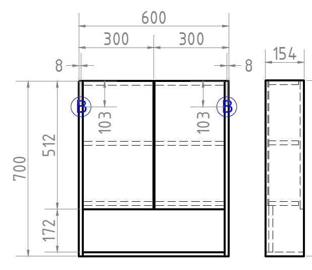 - Оснащение - 2 дверцы; 3 полки ЛДСП