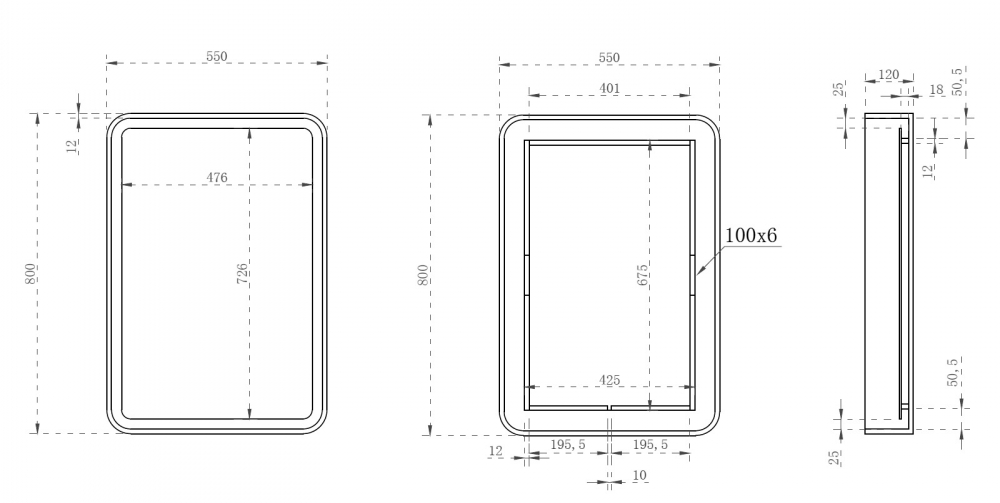 Зеркало Abber Kristall 55 см с подсветкой, темный оникс AT6701Onyx