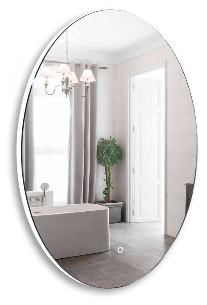 - Зеркало с LED-подсветкой и сенсорным выключателем овальной формы станет отличным украшением.