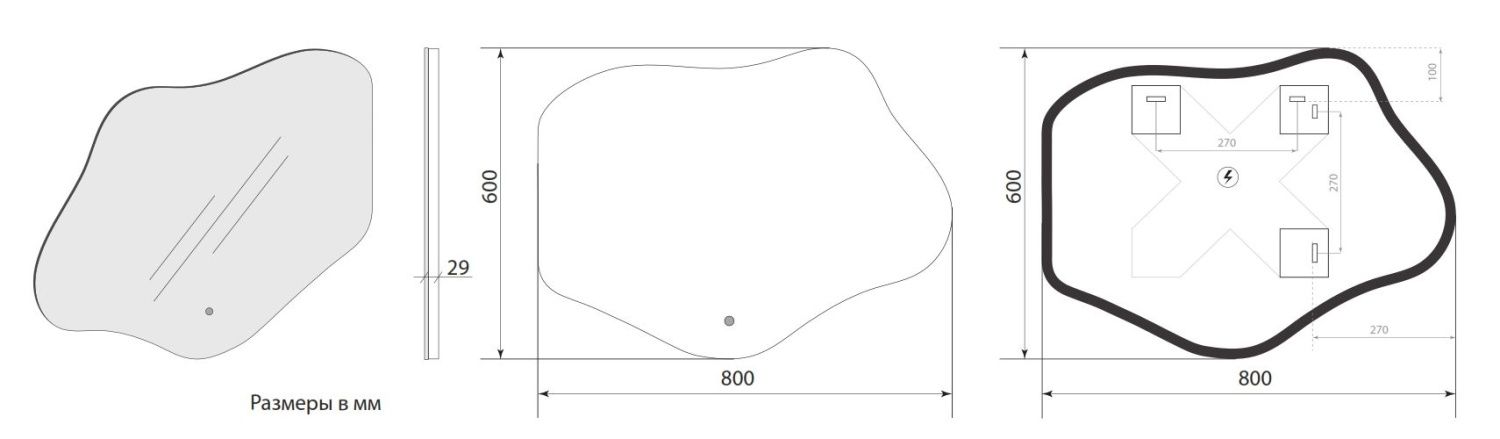 - Оснащение: зеркало, крепеж, коробка, инструкция.