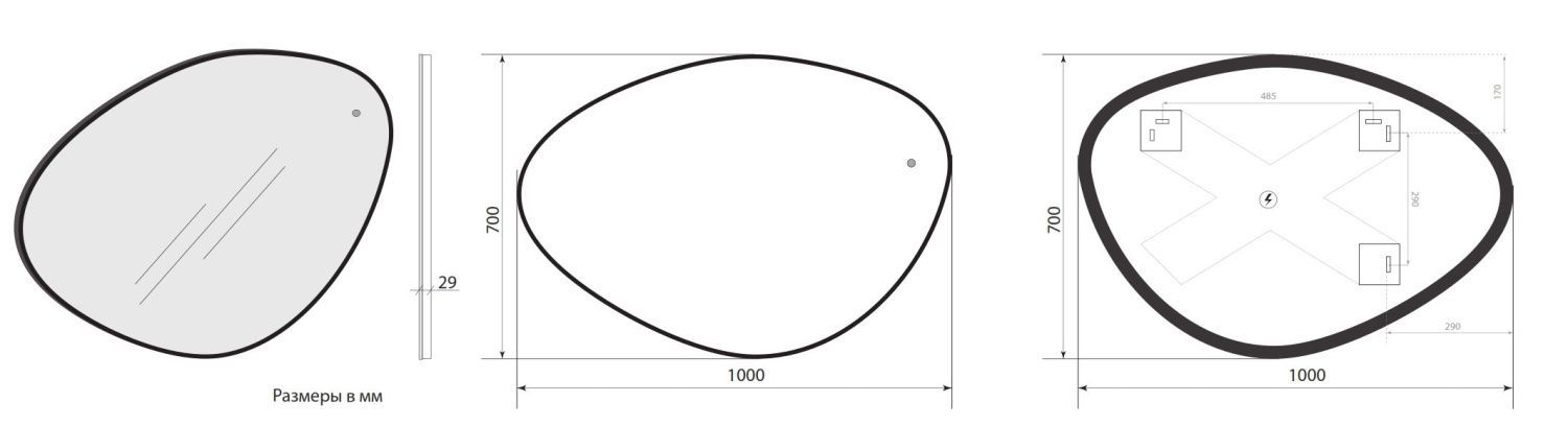 - Черная стеклянная кромка 10мм по периметру зеркала.