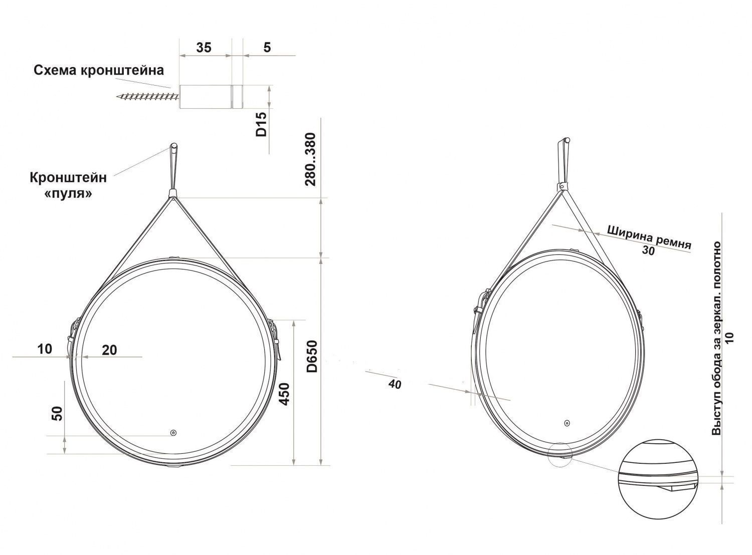 Зеркало Art&Max Milan 65x65 с светодиодной подсветкой предназначено для питания от сети напряжением 220В/SОГц. На обратной стороне зеркала наклеен декоративный пластмассовый корпус, по контуру или внутри которого установлен Lеd-светильник. Питание светильника осуществляется от сети 220В через блок питания постоянного напряжения 128, который закреплен внутри каркаса зеркала. Включение происходит за счет касания пальцем светящейся области диммируемого сенсорного выключателя. Ремень из натуральной кожи белого цвета.