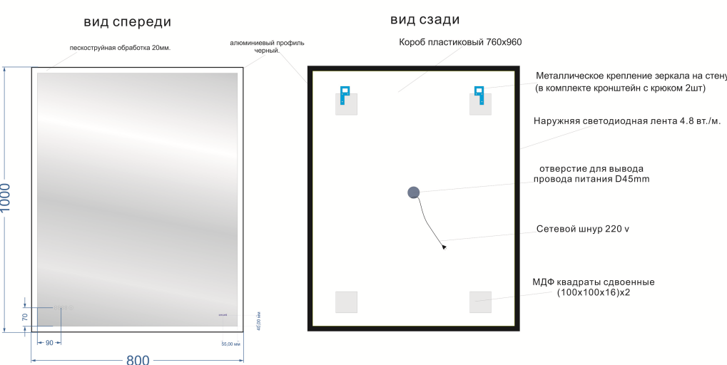 - Двойная LED-подсветка по периметру (наружная и внешняя)