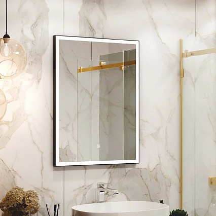 Зеркало Frame Black заключено в алюминиевый матовый профиль черного цвета. Сенсорный выключатель с диммером позволяет включать и регулировать яркость подсветки одним касанием.